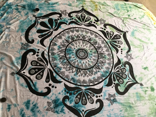 Mandala art has always fascinated people from all over the world and so for this year's Hopetown fest the art students of Ismet'19 decided to do mandala art on an almost 15 feet long cloth with acrylic paints and through the techniques of block printing . It was a huge task and we not only made it on one cloth but two! we gave the background effect with tie and dye and did the rest of the work on top of it with block printing and paint brushes !