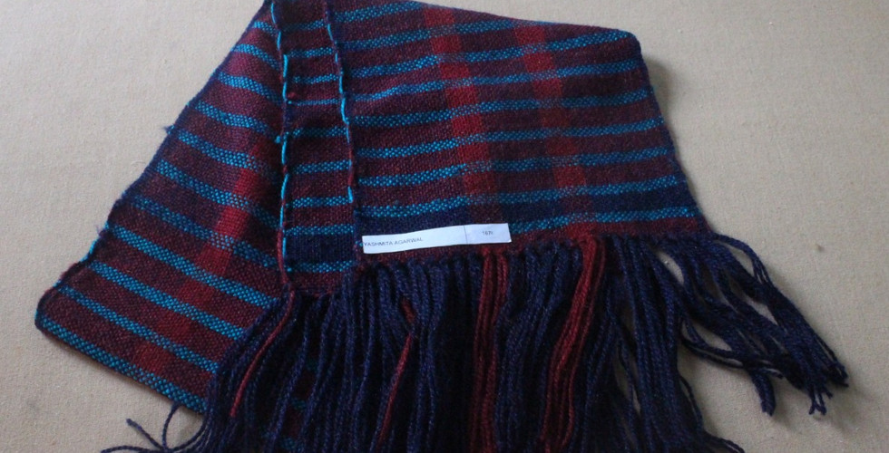 FINALLY you see a muffler coming your way. yes, this method is difficult to do at first but it also created very nice patters! you are allowed to make desired patters with the help of the machine by changing the number of wool strings in the "baana" This is what my muffler finally looked like when i finished the entire process of "taana" and "baana"!